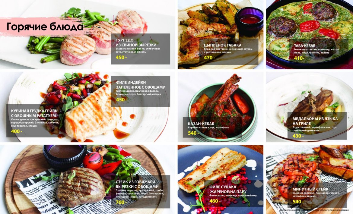 В западных странах в большинстве ресторанов среднего и высокого класса подают алкогольные напитки, такие как пиво и вино. В некоторых ресторанах подают все основные блюда, такие как завтрак, обед и ужин (например, крупные сети быстрого питани я, закусочные, гостиничные рестораны и рестораны в аэропортах). В других ресторанах еда может быть подана только один раз (например, в блинных ресторанах может быть только завтрак), или они могут подавать еду два раза за день (например, обед и ужин). Следует отметить, что restaurant в американском английском — любое предприятие общепита вообще, а не только ресторан в привычном смысле.